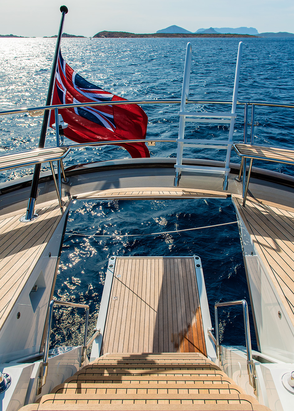 Pink Gin Yacht Specifications. Her beam is of 955m. The open aft deck with spacious 120 sqm is equipped with a 67-ton crane to move big and heavy tenders toys that cannot be stored on the main yacht.